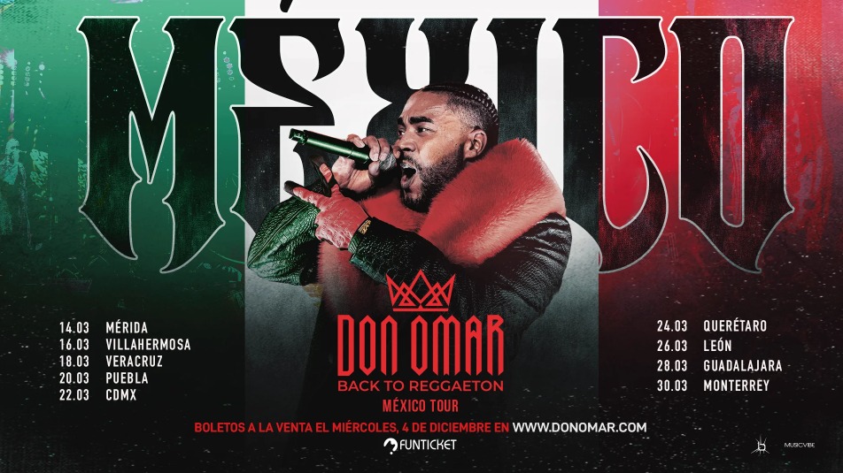 Don Omar no solo hará su regreso en grande, sino que llevará su show a nueve ciudades de México, entre ellas Villahermosa, CDMX, Monterrey y Guadalajara. Este tour se perfila como uno de los más esperados, ya que promete una mezcla de los éxitos más legendarios del reggaetón, junto con algunas de las colaboraciones más emblemáticas del artista. Las fechas y ciudades confirmadas para el tour son: