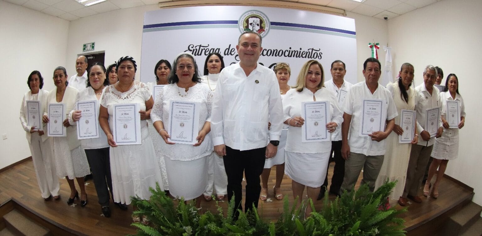 En una ceremonia llena de gratitud y reconocimiento, el Poder Judicial de Tabasco homenajeó a 88 servidores judiciales que han dedicado 15, 20, 30 y 40 años al fortalecimiento de la justicia en el estado.