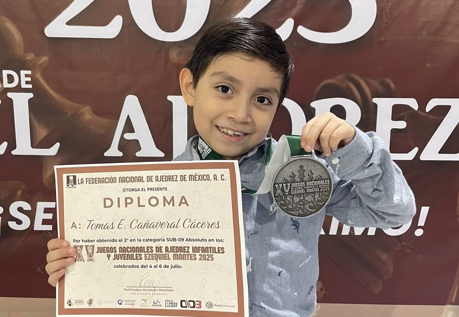 Con apenas 9 años, vivió una experiencia gratificante, el Campeonato Nacional «Ezequiel Montes» 2025, avalado por la Federación Nacional de Ajedrez de México, reunió a los mejores talentos infantiles y juveniles del país. En este prestigioso evento, Emanuel demostró que el ajedrez tabasqueño tiene un futuro brillante.