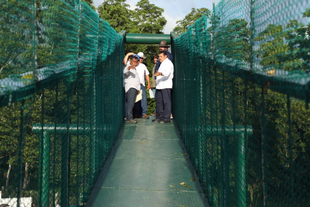 En el poblado Puxcatán el mandatario entregó el puente colgante que conecta con el ejido Yajalón, y que, a unos días de asumir el mandato, se comprometió con la comunidad a rehabilitarlo. Junto al alcalde, Ricki Antonio Arcos Pérez, recordó que este puente fue derribado por el río durante una creciente, debido a que no contaba con mantenimiento, por lo que durante una audiencia pública las familias solicitaron la intervención del Gobierno para su construcción.