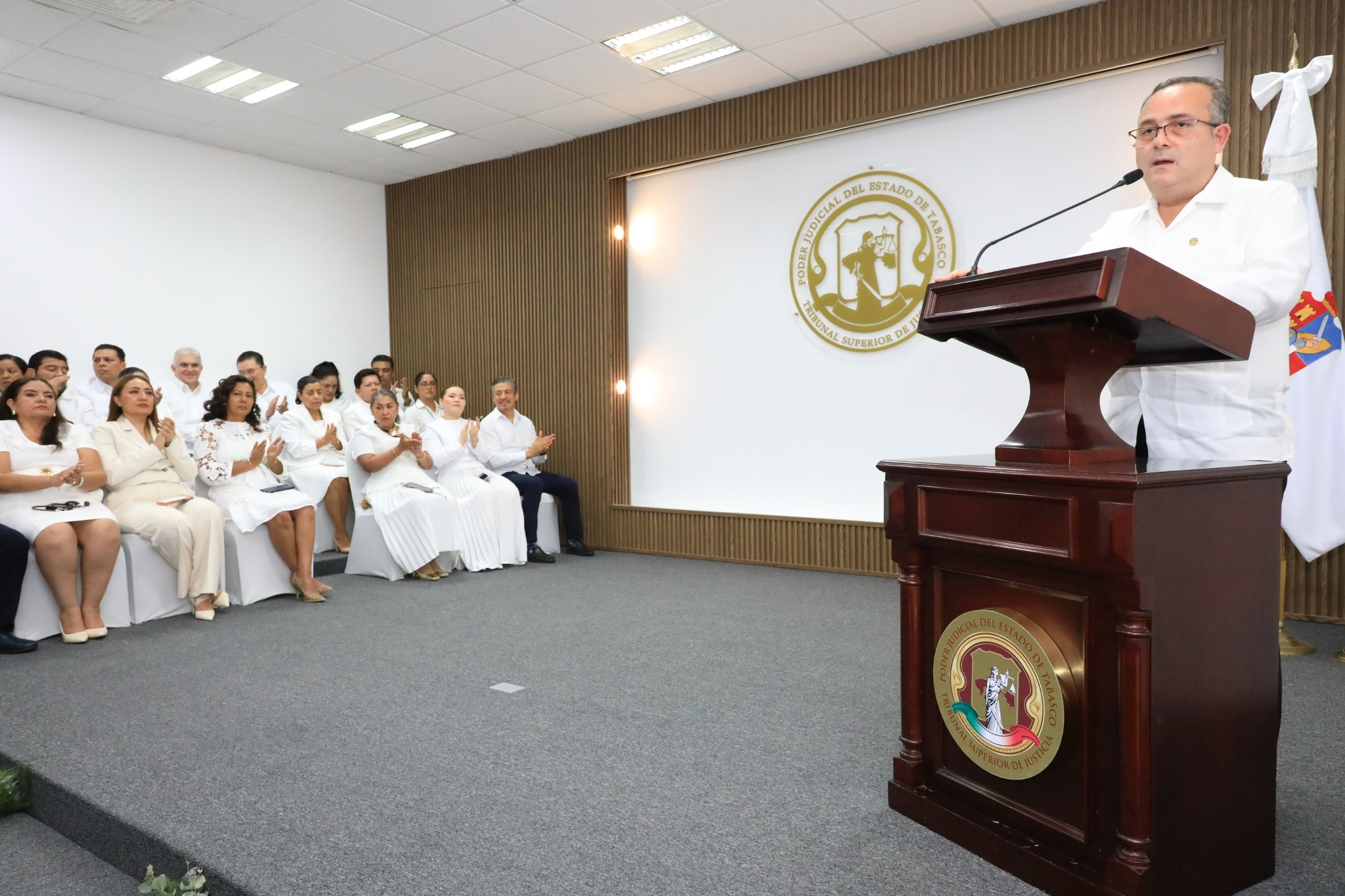 El Tribunal Superior de Justicia del Estado de Tabasco llevó a cabo la presentación del Informe Anual de Labores 2025, encabezado por su presidente, Carlos Efraín Reséndez Bocanegra, quien dio cuenta de los logros, retos y transformaciones que han marcado el rumbo del sistema judicial en la entidad. La ceremonia reunió a autoridades de los tres poderes del Estado, encabezadas por el gobernador Javier May Rodríguez, la presidenta honoraria del DIF Tabasco, Aurora Raleigh de la Cruz, y el secretario de Gobierno, José Ramiro López Obrador, además de magistradas, magistrados, juezas, jueces y representantes de organismos colegiados.