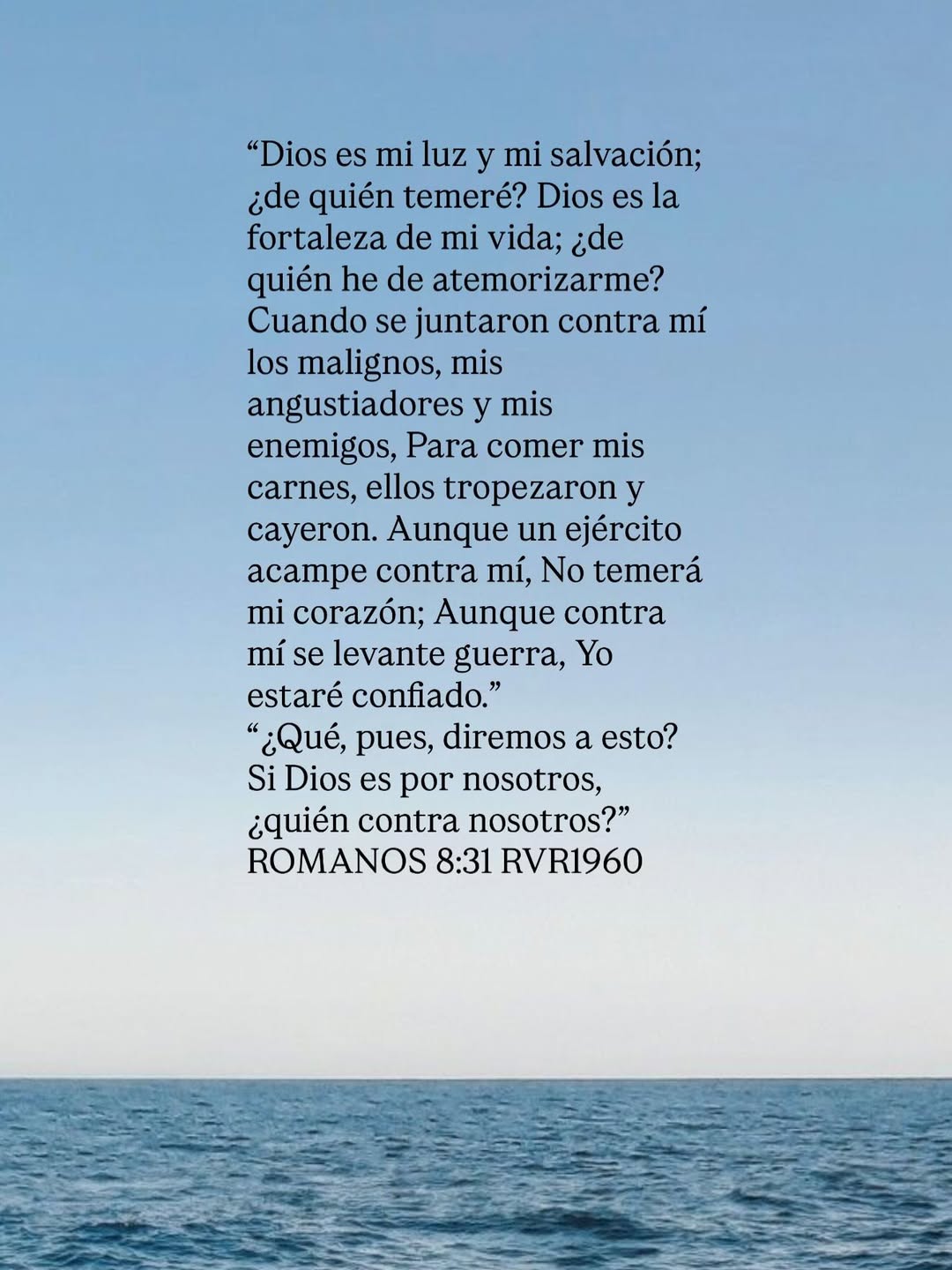 “Dios es mi luz y mi salvación; ¿de quién temeré? […] Cuando se juntaron contra mí los malignos, mis angustiadores y mis enemigos… ellos tropezaron y cayeron”.