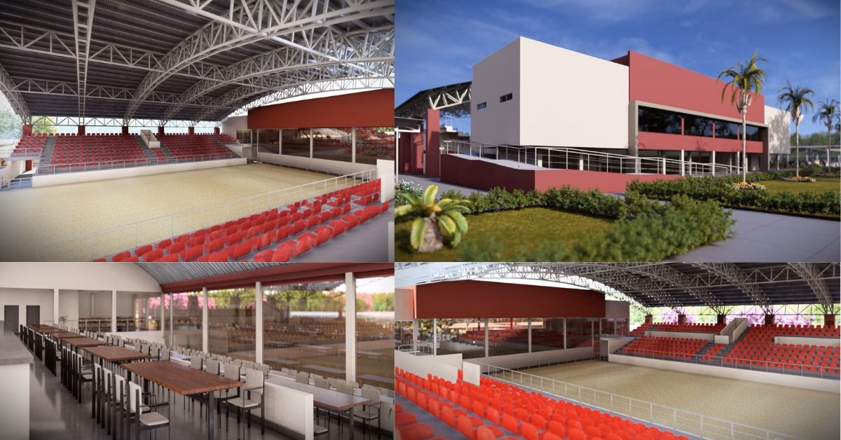 Un Collage De Cuatro Visualizaciones Arquitectónicas (Renders) De La Nueva Pista Ganadera De La Feria Tabasco 2026