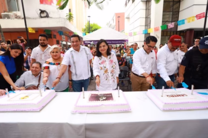 Villahermosa celebra con alegría su 461 aniversario con tradicional corte de pastel en el corazón del Barrio Mágico